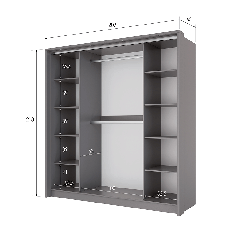 Please note that due to the folding door mechanism, an additional 51cm of clearance space is required in front of the wardrobe to allow the doors to open fully.