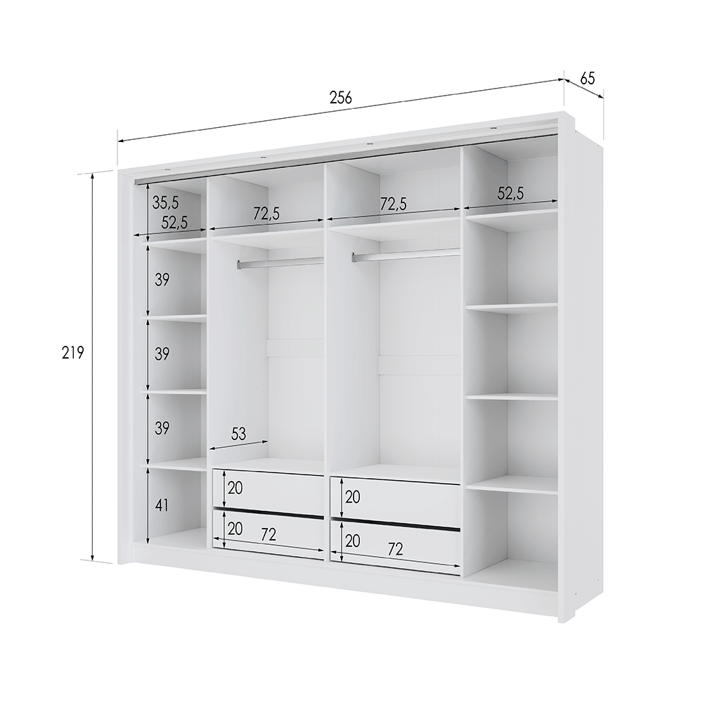 Due to the folding door mechanism, 62cm of clearance space is required in front of the wardrobe to allow the doors to open fully.
